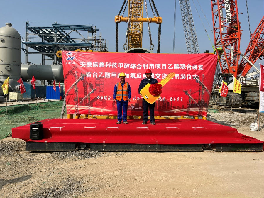 3月5日,由北京石油化工工程有限公司(簡稱:北油工程)EPC總承包的安徽碳鑫科技有限公司(簡稱:碳鑫科技)甲醇綜合利用項目乙醇聯(lián)合裝置首臺乙酸甲酯加氫反應器順利吊裝。