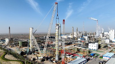 4月22日,由北京石油化工工程有限公司EPC總承包的陜西延長石油榆林凱越煤化有限責任公司50萬噸/年甲醇制乙醇項目首臺塔器設(shè)備——脫脂塔順利完成吊裝作業(yè)并精準就位。