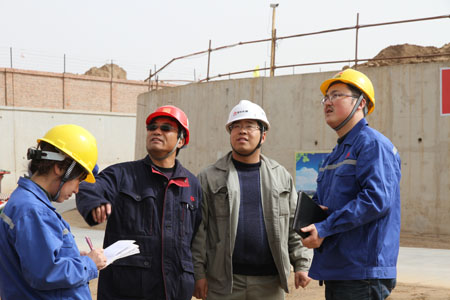 在煤-油共煉試驗示范項目工地,總包單位和業(yè)主安全管理人員進行安全檢查。