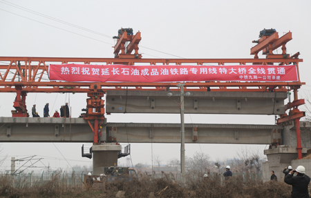 3月1日,延長石油西安成品油鐵路專用線特大橋全線貫通,該工程是延長石油延煉至西安成品油鐵路專用線配 套工程,被列為省重點建設(shè)項目之一,鐵路裝車能力達300萬噸/年。